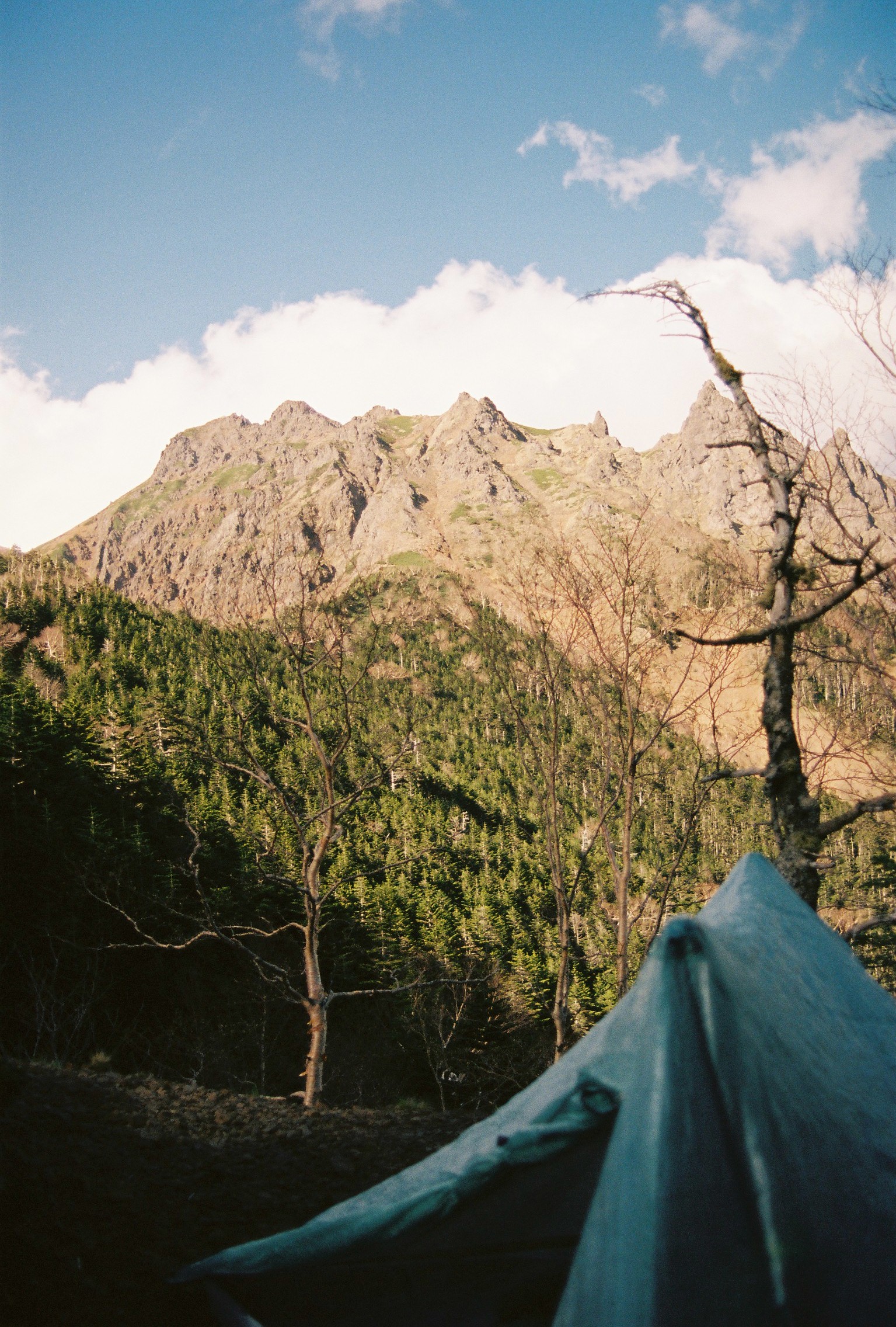 After getting over that snag I had a lovely evening at the pleasant Kuroyuri campsite, cooking myself a small meal and wandering out along the duckboards towards a nearby viewpoint as the sun was setting. I took pride in having now made it to the beautiful, heavily forested northern Yatsugatakes and looked forward to my journey through the woods towards Futago-ike cabin, my third and final stop.