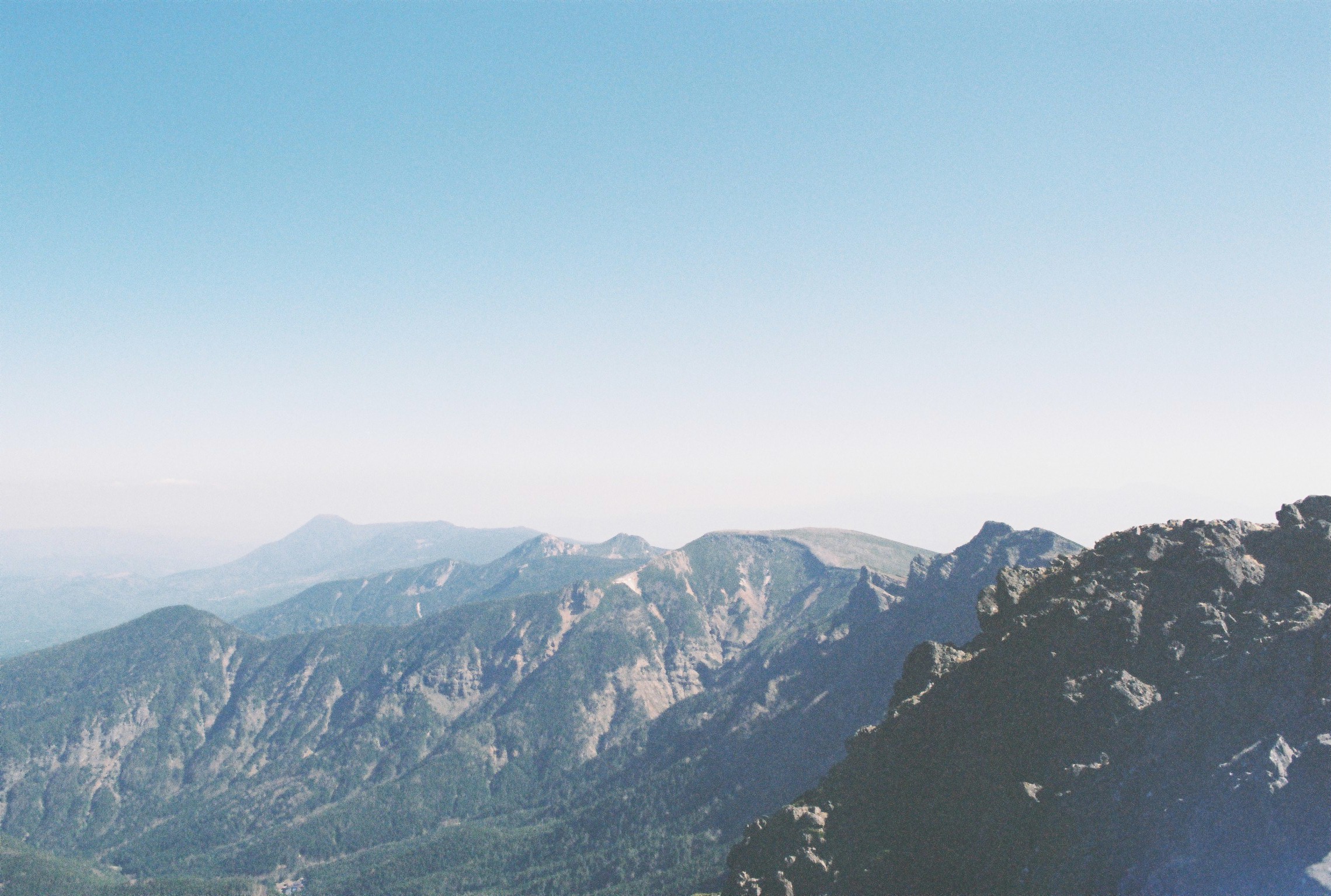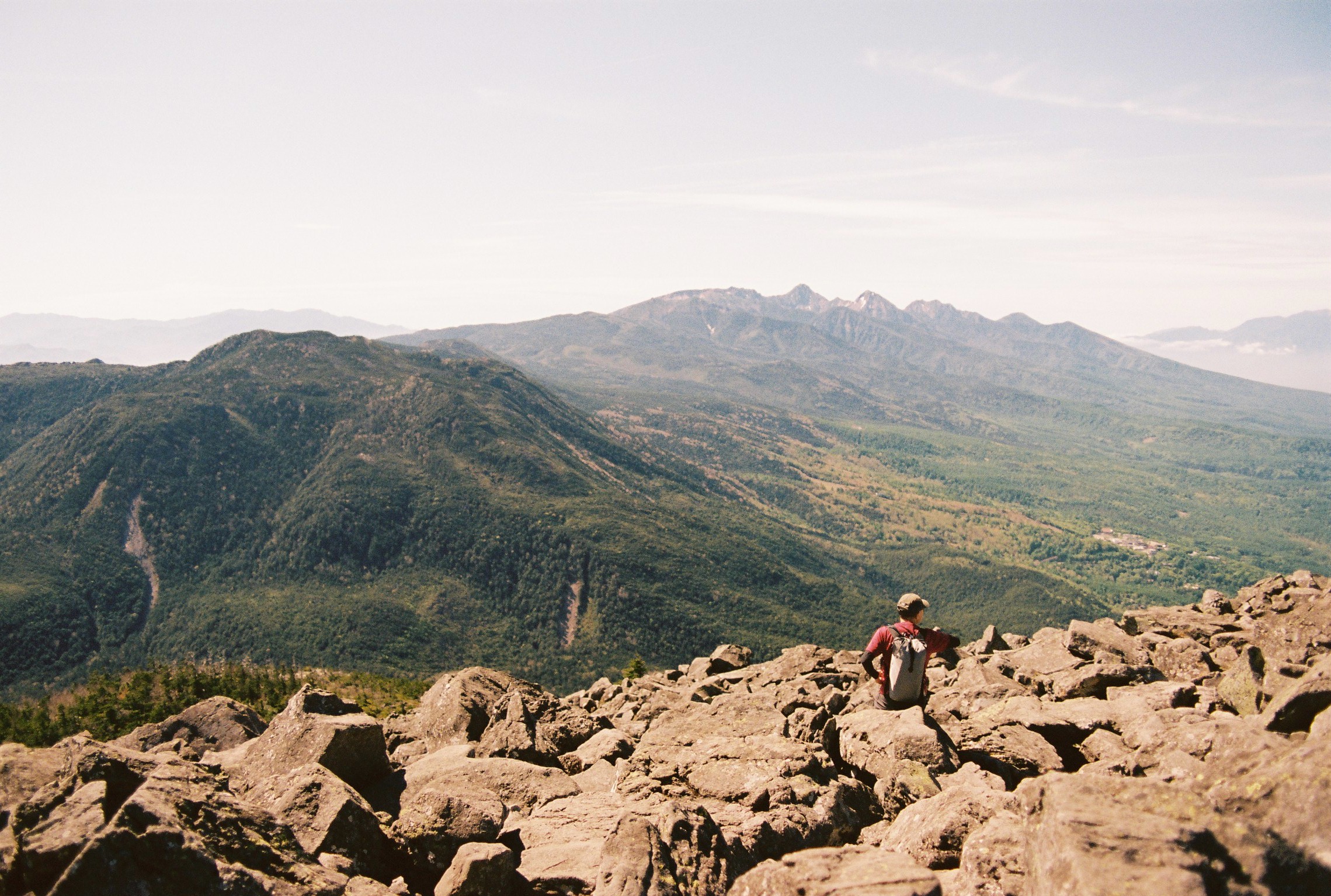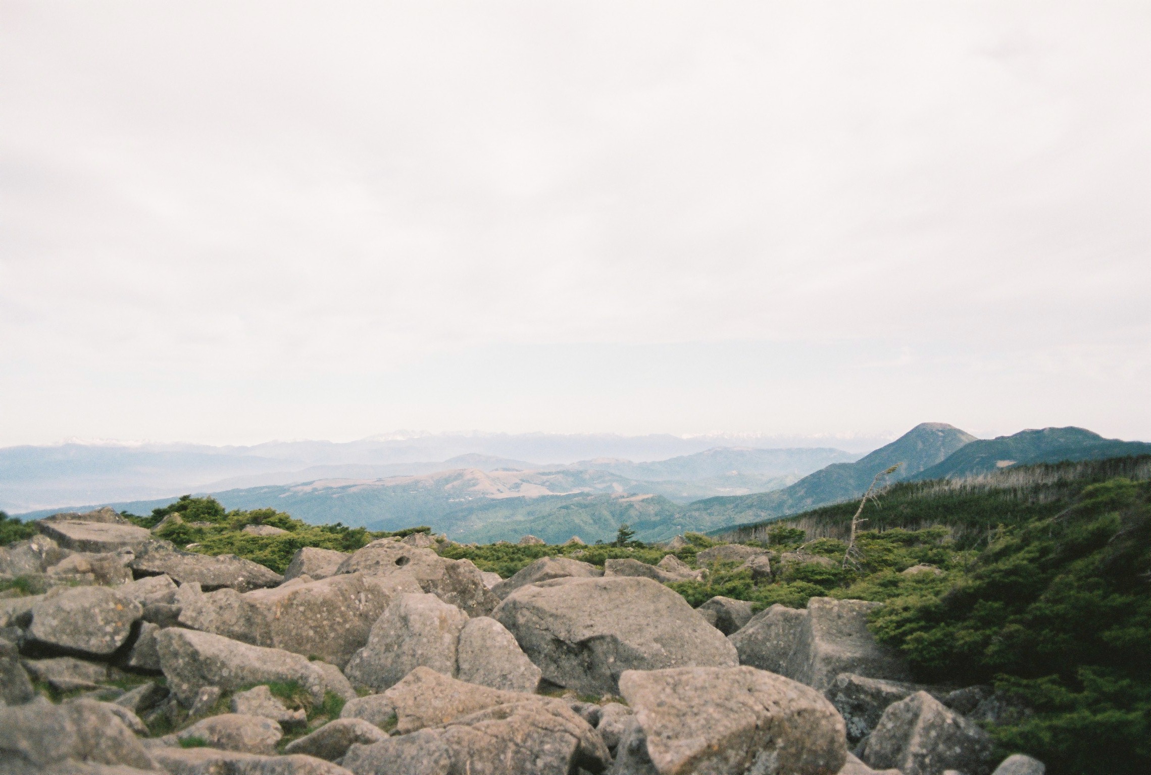The final climb was almost religious. The boulders were bigger than ever, the path steeper. There was no ground, with yawning gaps between the enormous rocks. I was forced to slow down, and take my time. Every step laden with meaning and intent. I was almost overwhelmed with emotion and felt my eyes watering several times as I made my way up. This is it. You’re nearly there. Well done. I felt like I was meeting my fate somehow. Reaching the 2530 metre summit of Mount Tateshina felt like the end of a long dream. It was warm, sunny, and there was no wind at all. I could see all across central Japan, and my entire route to get here. I sat down for a while.