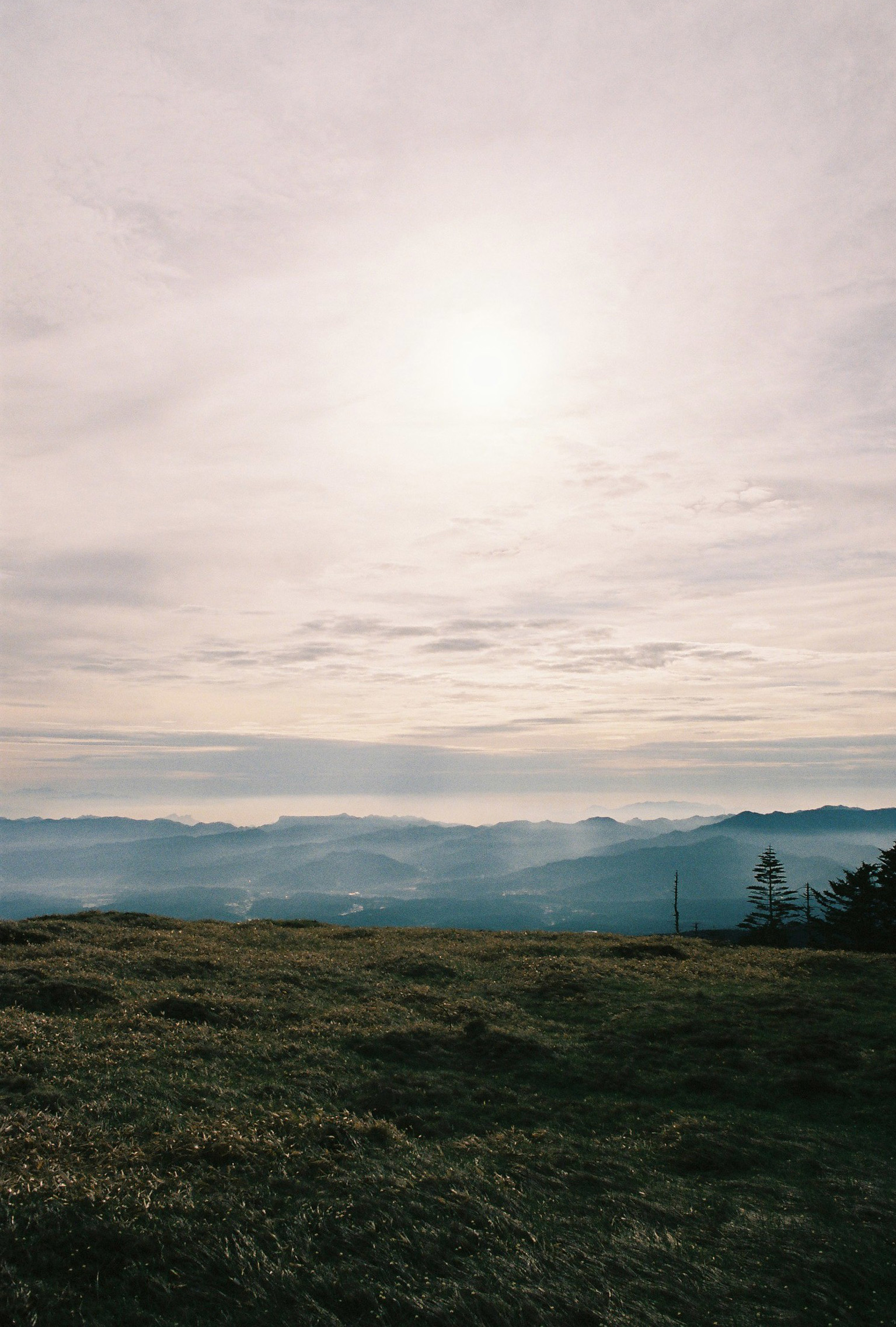The climb was surprisingly tough, but I made it to the summit of the smaller Futago-yama mountain. At that altitude the grass became short and stubby, and I was rewarded with maybe the best view on the trip. The early dawn light illuminating the faraway Northern Alps, their snow-capped peaks a delicate peach shade, the menacing volcanic cone of the very much active Mount Asama across the valley, and further across to the endless ridge lines of the Okutama mountains in the direction of Tokyo. The gigantic gojo-iwa boulder at the summit of mount Kinpu clear as day. I was struck, was this my reward? Is this where I melt down? (No).