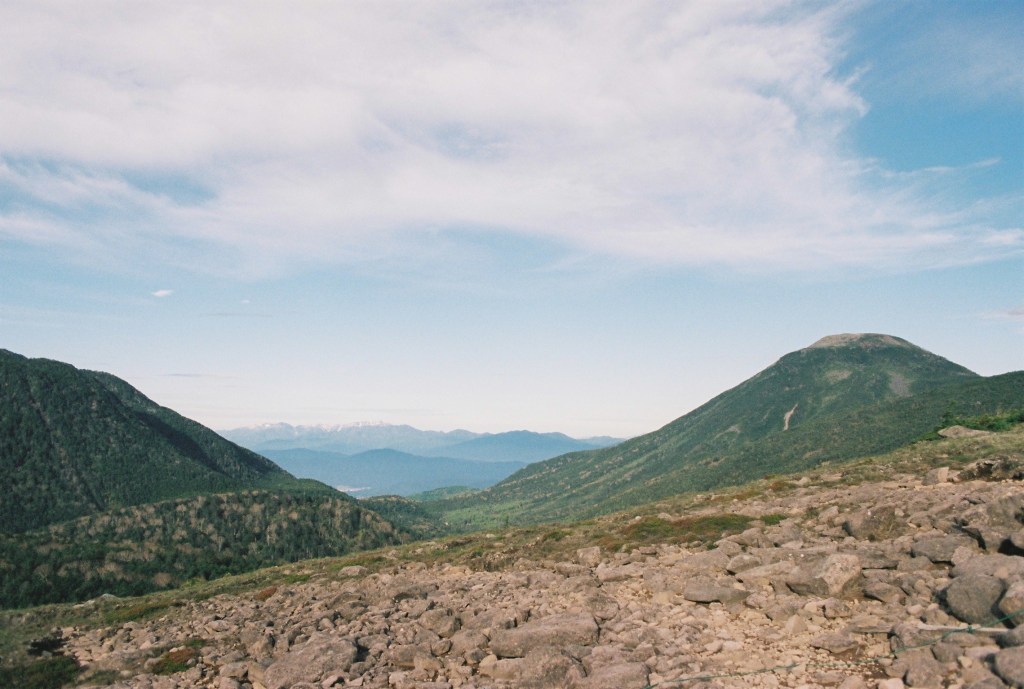 On reflection, despite sleeping pretty well at Kuroyuri campsite, today was a day of simply slogging through it and not getting too caught up with whether or not I would make it to Futago-ike cabin in time (pro-tip: I absolutely did). The first mountain of the day was Nakayama, and the trail up to its peak was pleasant enough, and not too steep. Though already it was impossible to escape today’s theme: giant boulders that simply must be clambered over if you want to get where you’re going. Thankfully I didn’t end up rolling an ankle or anything like that.