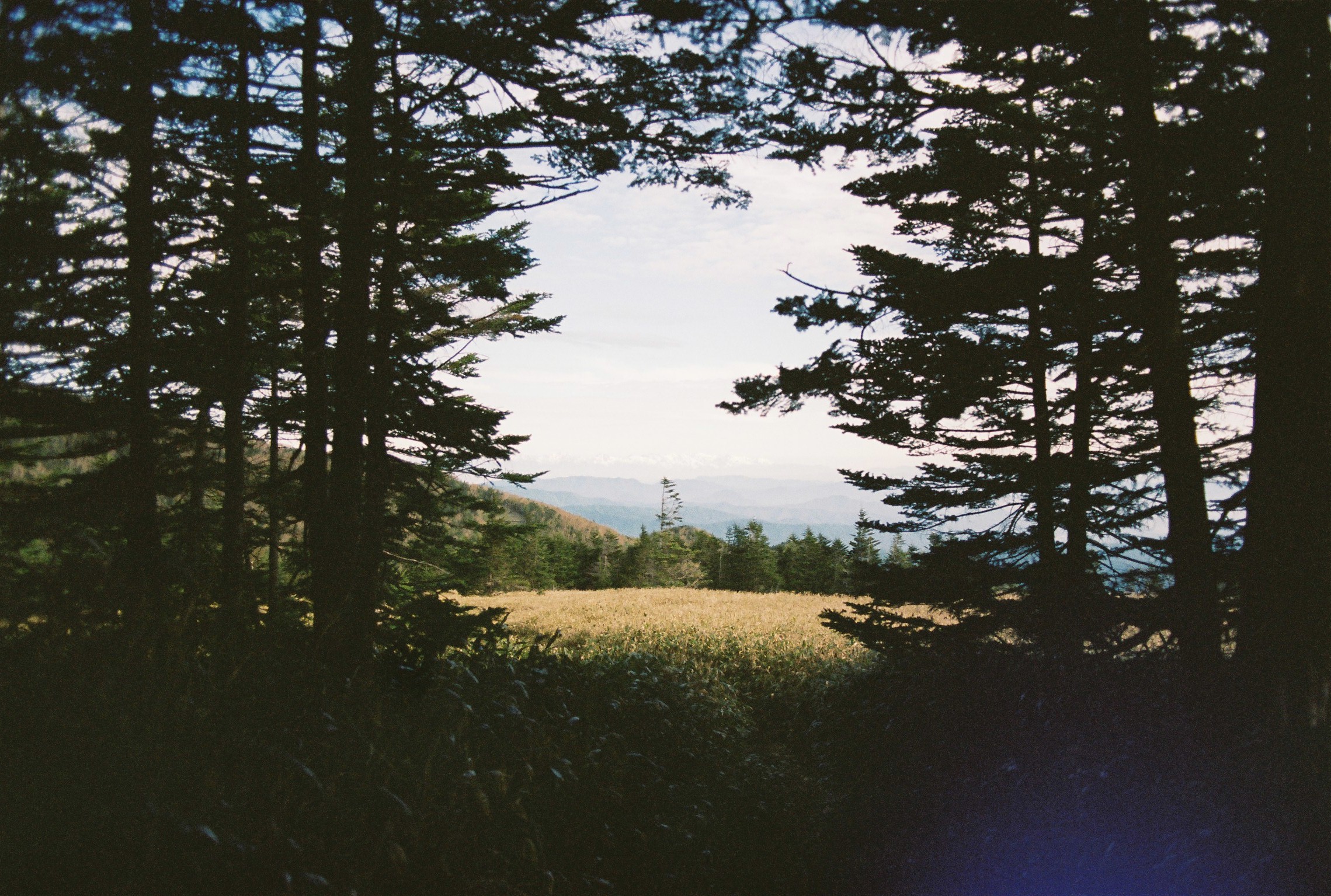 The descent down to Ama-ike pass was comparatively easy, and soon I was on the duckboards in another sea of bamboo grass, with the bright blue peaked roof of Shimagare hut poking up between the scattered trees. I wanted to sit down and get a little food, as I was beginning to be repulsed by my camp rations, but the owner popped out and said they don’t serve food to non-guests. Ok. I move to sit on the terrace to catch my breath and take a bite to eat. Nope, can’t do that. You need to buy something to sit there. Hello? I’m the only person around for miles. Fine I’ll have a tea. No I don’t care how you serve it it’s just an excuse to sit here. In the end the owner was quite nice and was curious about the journey I had taken so far.